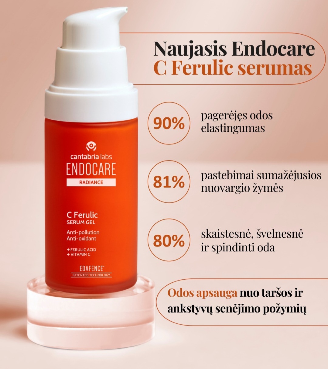 – Be to, jo pilnoje antioksidacinėje formulėje yra 5% gryno vitamino C ir 0,5% ferulo rūgšties.