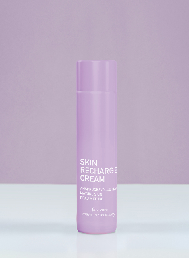 „Skin Recharge” kremas išlygina išraiškos linijas ir stangrina odą biomimetiniais „Neuro-Relax” peptidais, o matrikinai ir hidroksiprolinas skatina kolageno gamybą, kad veido oda būtų stangresnė ir atsparesnė. Mažos molekulinės hialurono rūgštis suteikia gilų drėkinimą, putlindama odą iš vidaus. Antioksidantai apsaugo nuo oksidacinio streso, o vaivorykštės dumblių ekstraktas padeda sumažinti pigmentacijos pažeidimus, todėl odos tonas tampa tolygesnis ir švytintis. Mėgaukitės lygesne, atgaivinta oda su jaunatvišku švytėjimu.